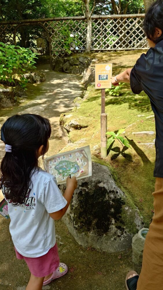 ヒントと地図を頼りに、庭園内に