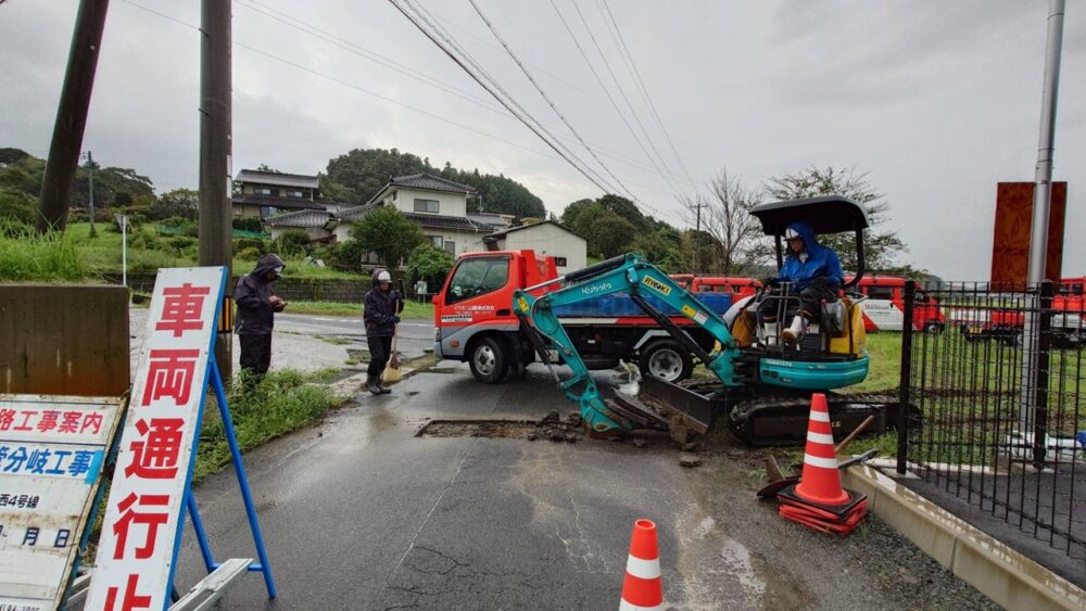 新築Y様邸 給水管分岐工事 2025.09.11 こんにちは、 ツクルホーム山下建築工房の 山下です。 新築Y様邸で道路に埋設された水道 本管から給水管を新たに敷地内に引き込む 給水管分岐工事が始まりました! 雨の中、業者の皆様ありがとうございます これから、本格的な工事に入って いきますので、また様子は 随時アップしまね